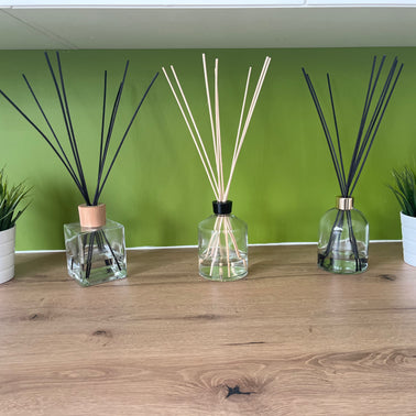 La première étape pour créer un diffuseur de parfum maison est de choisir le parfum que vous souhaitez diffuser. Il peut s'agir d’un parfum à la senteur de votre choix pour donner une ambiance fleurie, boisée, fruitée ou gourmande à votre intérieur ou bien d'une huile essentielle de votre choix, comme la lavande pour une ambiance relaxante, le citron pour une atmosphère rafraîchissante ou encore la vanille pour une note chaleureuse. Ensuite, vous devrez choisir un récipient adapté pour contenir le parfum : en forme de cube, de cylindre ou de cloche, ainsi que la contenance : 100 ml, 250 ml ou 500 ml.