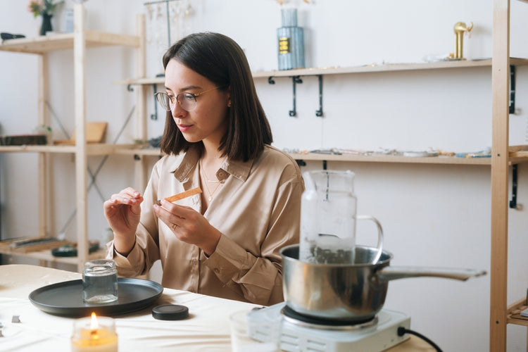 Une fois la cire entièrement fondue, retirez le fondoir ou récipient du feu et laissez descendre la température de 10 à 15°.Étape 5 : La touche finale, coulez votre bougie