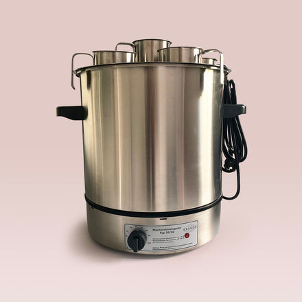 Les fondoirs facilitent la fonte de la cire au bain-marie dans des quantités importantes en toute sécurité. Afin de manipuler facilement les composants comme les cires ou les parfums, les béchers en aluminium ou en inox ou les pelles en plastique sont des alliés précieux.