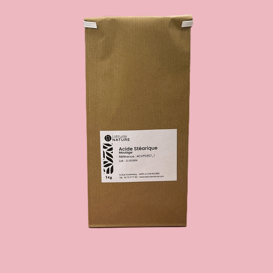 Acide stéarique base de palme 100% végétale pour bougies moulées et galets fondants. Cire de composition 100 % palme, vegan et garantie sans OGM.