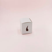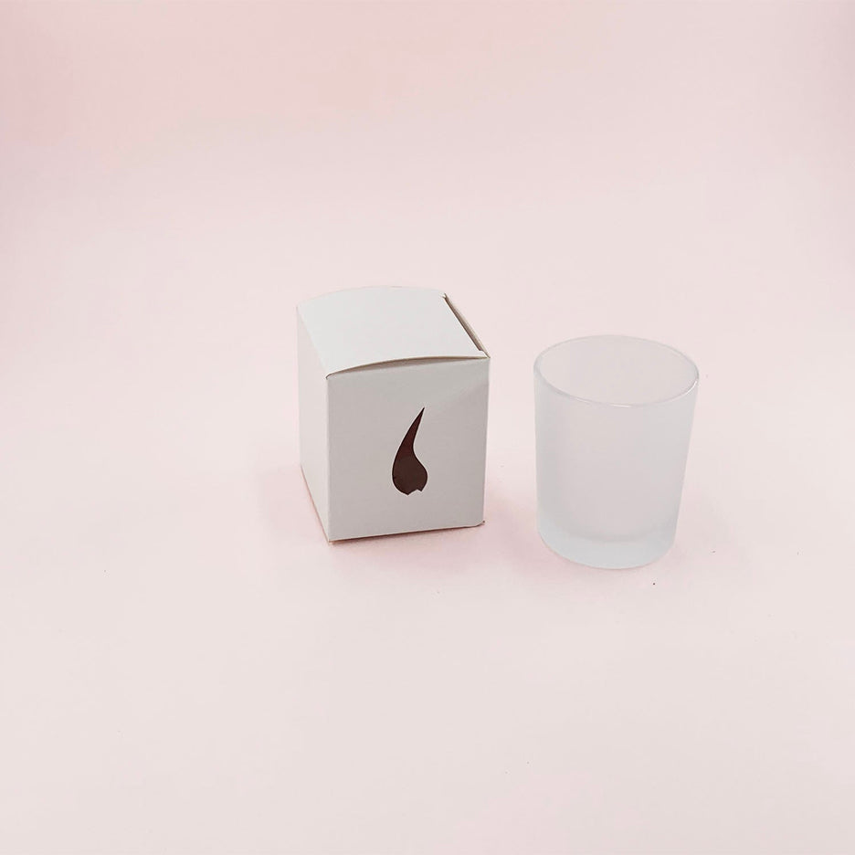Boite en carton recyclé blanc avec découpe flamme pour bougie votive de 75 g.