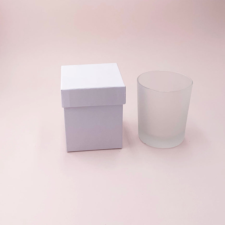 Boite cloche montée en carton recouvert papier mat couché blanc pour bougies de 150 g.