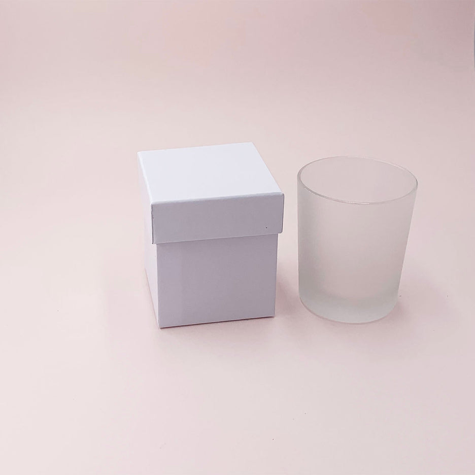 Boite cloche montée en carton recouvert papier mat couché blanc pour bougies de 180 g.