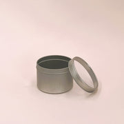 Boîte métallique argentée sans soudure, avec couvercle coiffant à fenêtre. Cette boîte est parfaite pour couler votre bougie d'ambiance ou de massage maison ! La fenêtre, en PET, offre un aperçu de votre création.