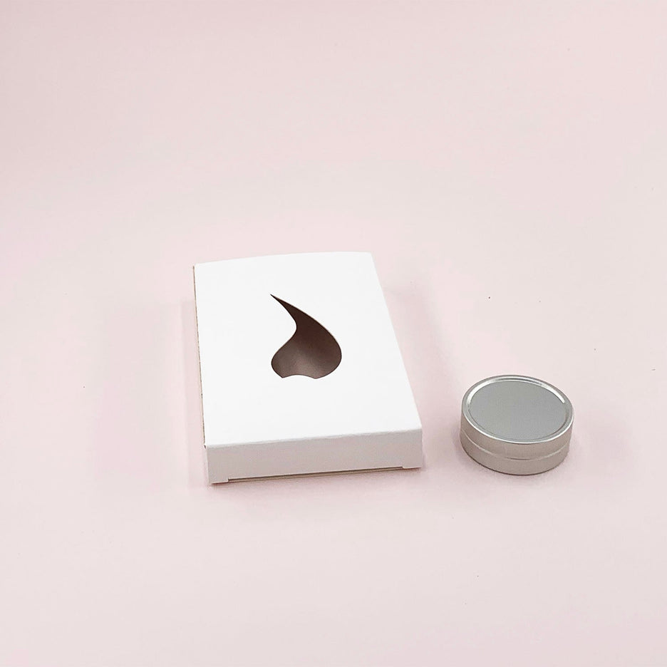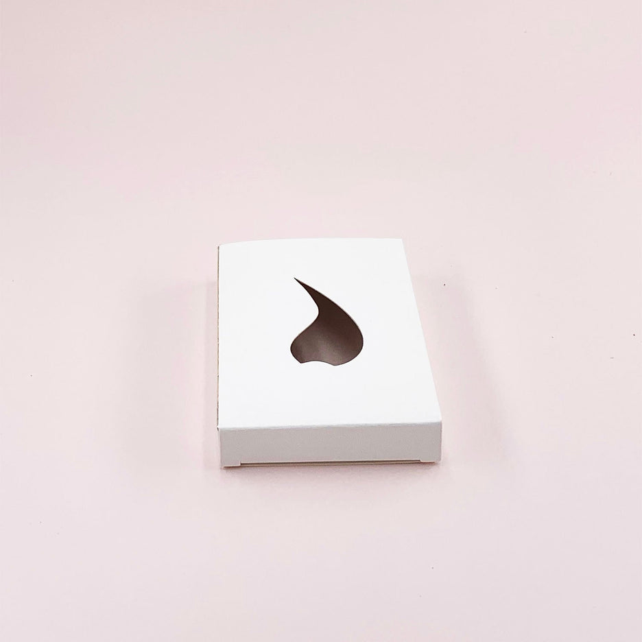 Boite en carton recyclé blanc avec découpe flamme pour 6 bougies chauffe-plats (taille vendue sur le site) ou tablette de galets fondants.