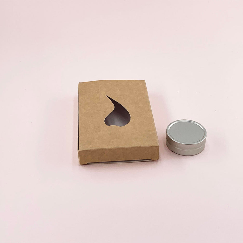 Boite en carton recyclé kraft avec découpe flamme pour 6 bougies chauffe-plats (taille vendue sur le site) ou tablette de galets fondants.