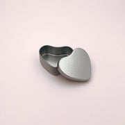 Container métallique argenté en forme de cœur recyclable et sans BPA, sans soudure pour votre bougie d'ambiance faite maison.