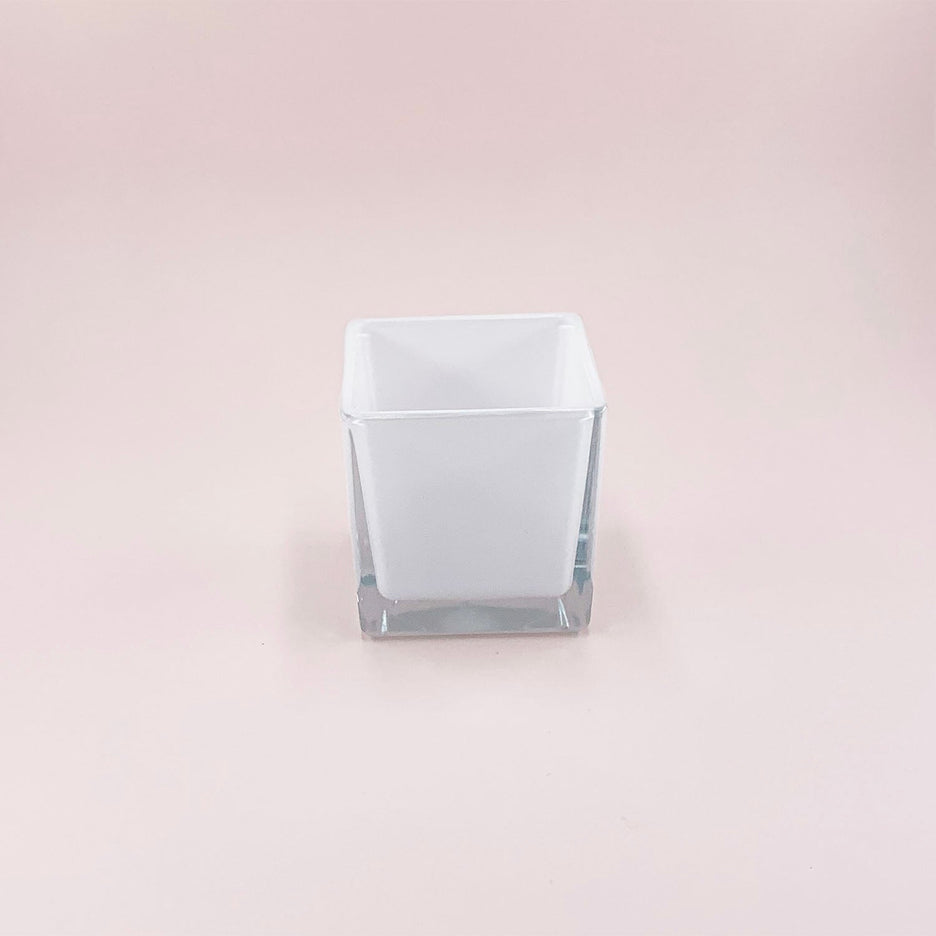 Cube en verre laqué intérieur blanc. Pour couler vos bougies maison naturelles parfumées ou non.