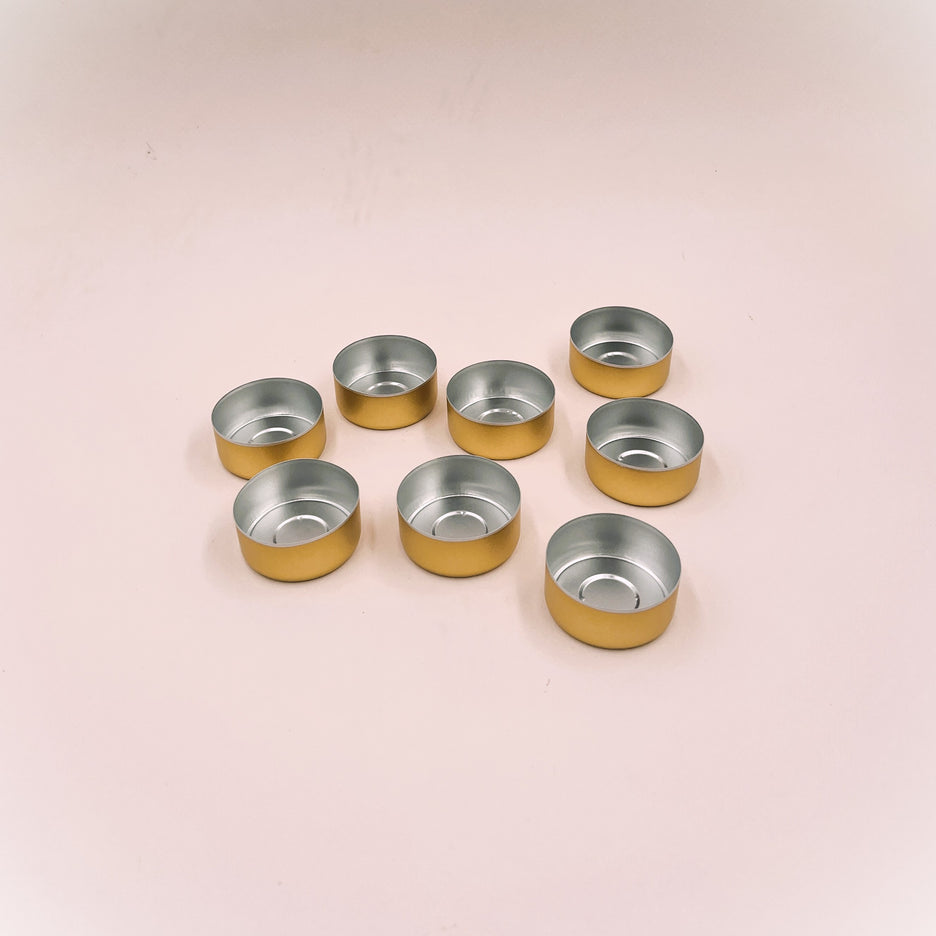 Godet chauffe-plat en aluminium doré pour la fabrication de bougies coulées maison. Vous pouvez les personnaliser avec le parfum et la couleur de votre choix.