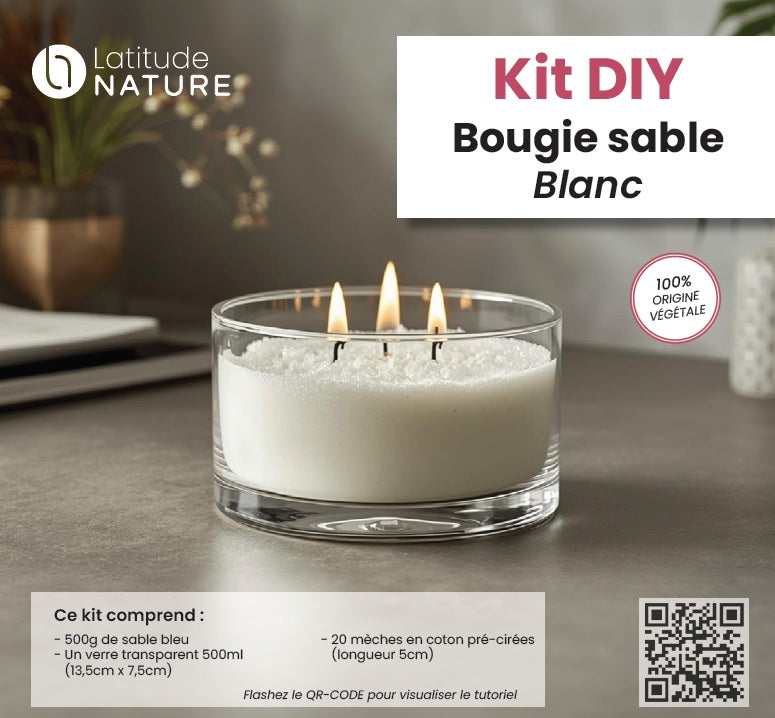 Ce kit complet DIY vous guide pas-à-pas pour fabriquer votre bougie sable blanc.