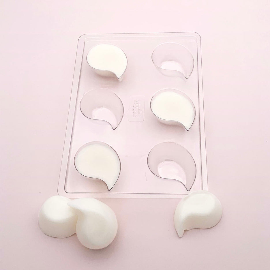 Moule à 6 cavités en forme de flamme. Réalisez de jolis galets fondants maison grâce à ce moule réutilisable et pratique. Compatible avec toutes nos cires végétales de moulage.