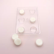 Moule à 6 cavités en forme de rond. Réalisez de jolis galets fondants maison grâce à ce moule réutilisable et pratique. Compatible avec toutes nos cires végétales de moulage.