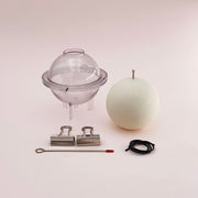 Moule en polycarbonate transparent, réutilisable et incassable en forme de boule. Fourni avec une aiguille vous permettant de fixer et centrer la mèche au moule.