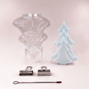Moule en polycarbonate transparent, réutilisable et incassable en forme de sapin. Fourni avec une aiguille vous permettant de fixer et centrer la mèche au moule.