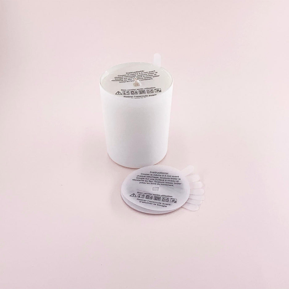 Opercule de protection pour bougie en papier translucide PEFC pour protéger la surface de votre bougie de la poussière, avec languette pour la retirer facilement.