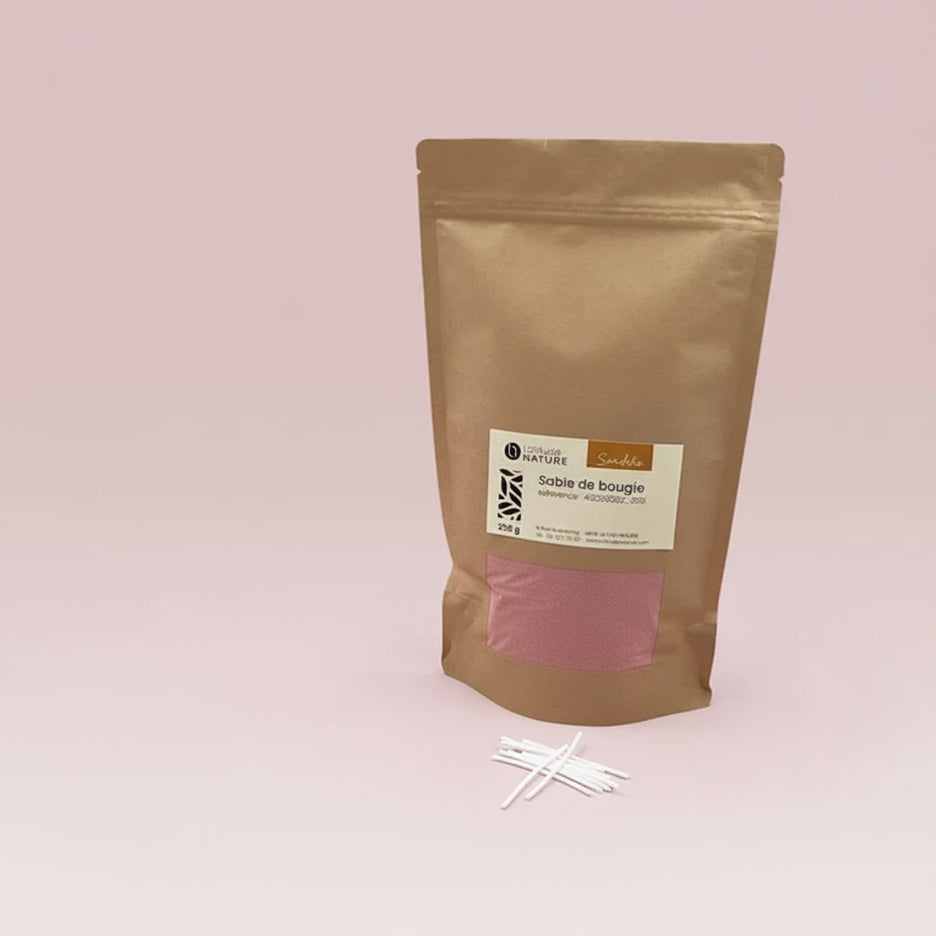 Inclus dans le sachet de 250 g de sable : 10 mèches plates 100% coton.