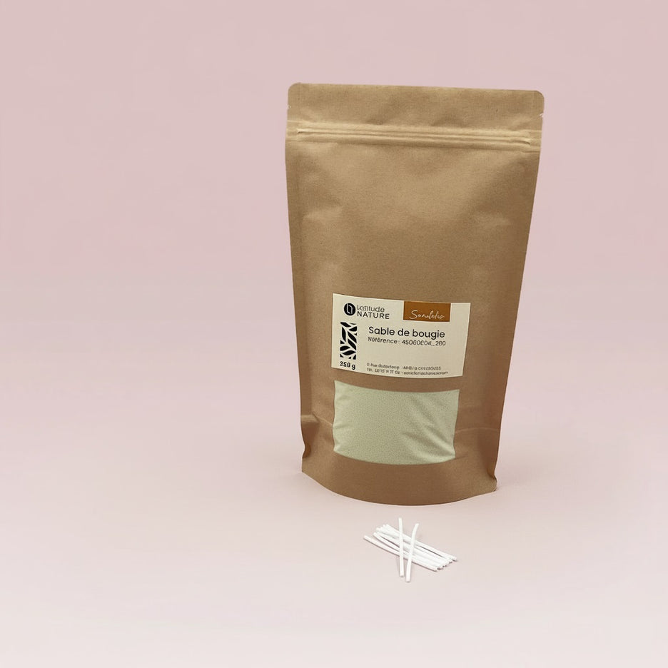 Inclus dans le sachet de 250 g de sable : 10 mèches plates 100% coton.