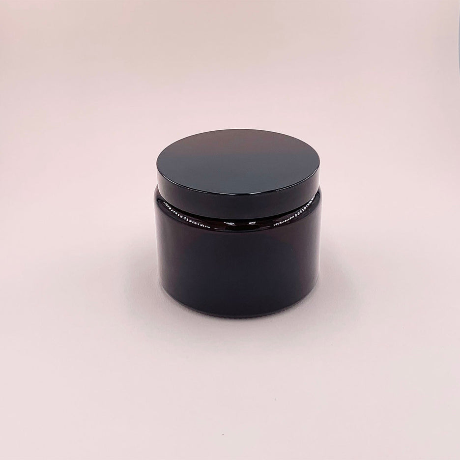 Verre pour couler votre bougie d'ambiance, et couvercle assorti, type pommadier. Couvercle Noir mat, bords droits.