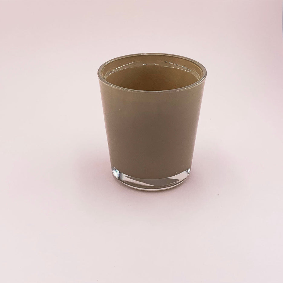 Verre conique couleur taupe pour couler votre bougie d'ambiance faite maison.